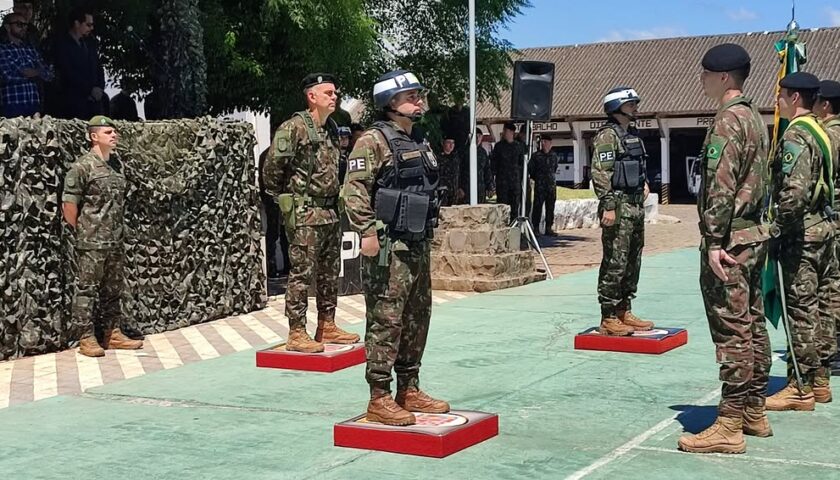 Santiago (RS) – Na última quarta-feira, 14 de fevereiro, o 1º Pelotão de Polícia do Exército Mecanizado (1º Pel PE Mec) realizou a cerimônia de Passagem de Comando. O Capitão de Infantaria Raul Teixeira Mendes de Sousa transferiu o comando da unidade para o 1º Tenente de Infantaria Diego Pisniaki, em um evento marcado por tradição e solenidade.