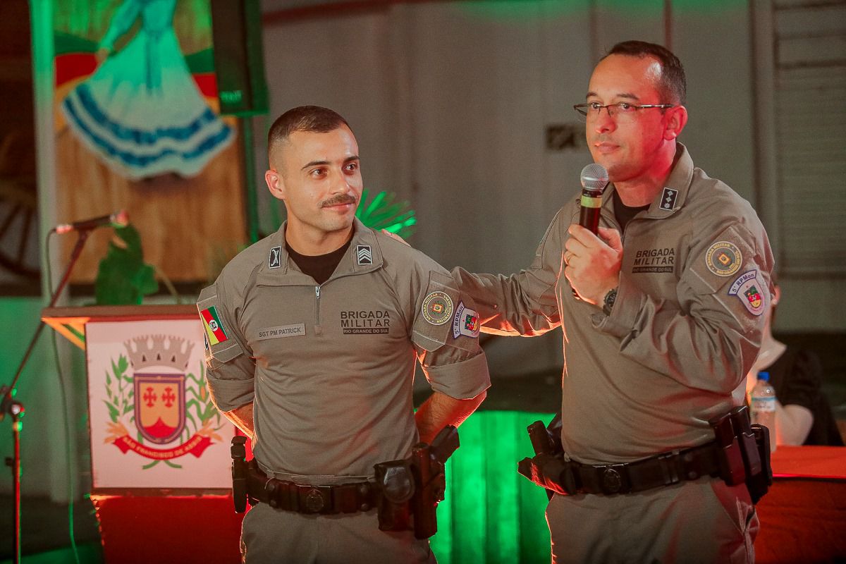 O evento aconteceu no CTG Negrinho do Pastoreiro e contou com a presença do Comandante do 5º RPMon, Maj PM Regis Girardon Copetti; do Comandante do Pelotão, Ten PM Fernando Minuzzi da Silva; do Prefeito Municipal Rubemar Paulinho Salbego; do Presidente da Câmara Municipal de Vereadores, Rudinei Ferreira Corteze; da Exma. Juíza da 1ª Vara da Comarca de São Francisco de Assis, Dra. Taiele Balardin de Oliveira; do Exmo. Juiz da 2ª Vara da Comarca de São Francisco de Assis, Dr. Arthur Reveillau dos Reis; da Promotora de Justiça, Dra. Karolina Elisa Heinheimer; da Secretária Municipal de Educação, Prescila Sachetti; do Gerente do Sicredi, Michel Gioda, além de familiares dos formandos.