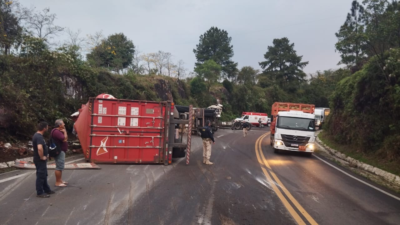 Um caminhão que deslocava no sentido Santiago – Jaguari saiu da pista e colidiu com o barranco. O caminhão era conduzido por um homem que é habilitado a dirigir apenas veículos leves. Ninguém se feriu no acidente.