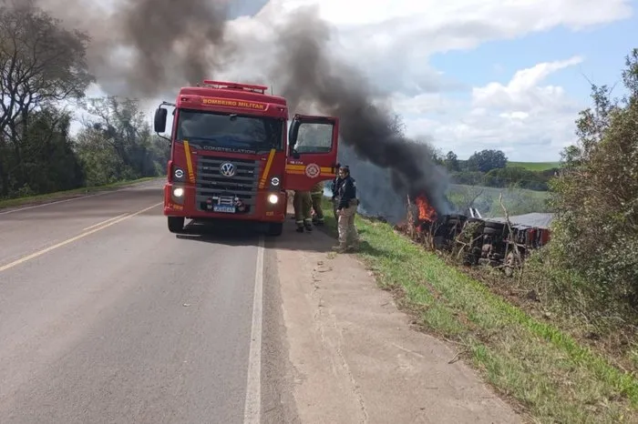 Um homem de 64 anos morreu após colisão entre um carro e um caminhão na BR-158, em Palmeira das Missões,...