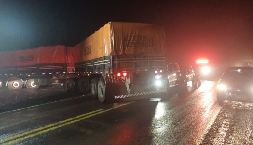 No início da noite desta segunda-feira (5), por volta das 18h40, a Polícia Rodoviária Federal atendeu uma colisão transversal, envolvendo dois veículos de passeio e uma carreta, no km 362 da BR-287 em Jaguari.