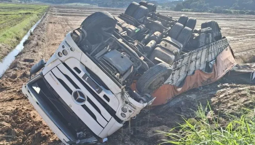 Na manhã desta terça-feira, 23 de julho, um trágico acidente em Guaramirim, no norte de Santa Catarina, resultou na morte de duas pessoas. A ocorrência foi registrada no km 44 da SC-108, onde uma carreta saiu da pista e tombou no acostamento, esmagando uma mulher de 30 anos e um homem de 35 anos.