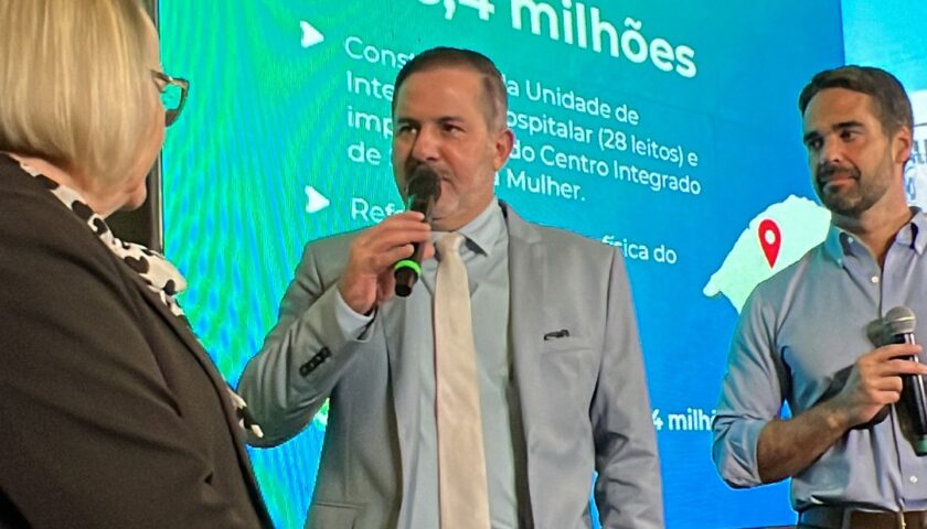 Na manhã desta segunda-feira (04), o Governo do Estado do Rio Grande do Sul oficializou o repasse de R$ 6,4 milhões ao Grupo Hospitalar Santiago (GHS), em um ato solene realizado no Palácio Piratini, em Porto Alegre. O anúncio foi feito pelo governador Eduardo Leite, ao lado da secretária estadual da Saúde, Arita Bergmann, e contou com a presença do diretor do GHS, Ruderson Mesquita Sobreira, que destacou a importância do investimento para a saúde da região central do estado.