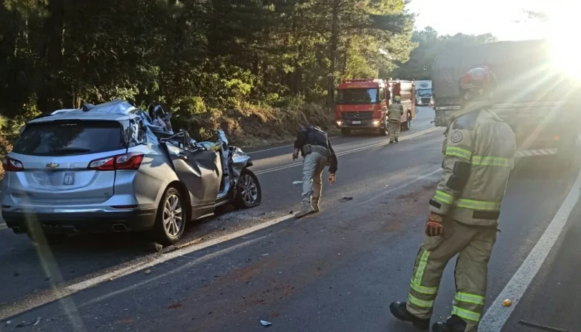 A Polícia Rodoviária Federal atendeu um acidente ocorrido na tarde desta quinta-feira (03), no km 354 da BR 287, em Jaguari, envolvendo um caminhão e um automóvel, causando a morte de uma mulher e bloqueio da rodovia.