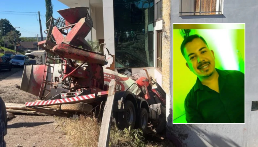 Em Jaguari, na manhã desta quinta-feira (14), um caminhão betoneira, que é usado para transportar concreto usinado, estava descendo a Avenida Sete de Setembro, rua central da cidade, quando teria perdido o controle.