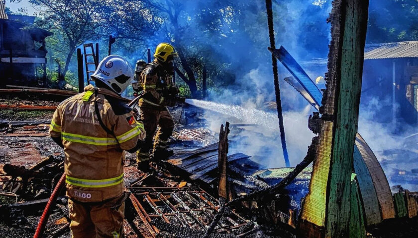 Na tarde desta quinta-feira, 3, por volta das 14h50, um incêndio consumiu totalmente uma residência de madeira na Rua Alvino Rodrigues, no bairro João Goulart, em Santo Ângelo.