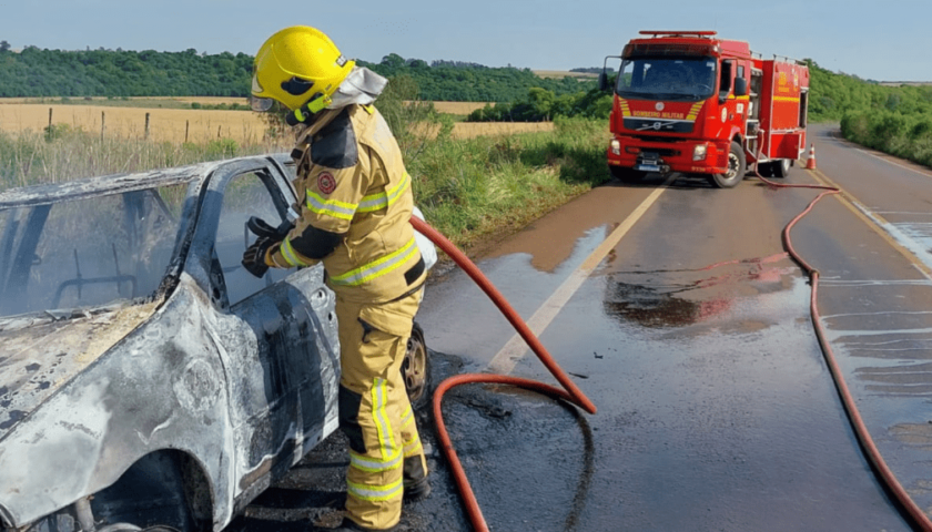 Um automóvel foi completamente destruído durante um incêndio na manhã desta sexta-feira (1º), na ERS-168, em Bossoroca. O caso ocorreu no acostamento da rodovia, nas proximidades da ponte sobre o Rio Piratini.
