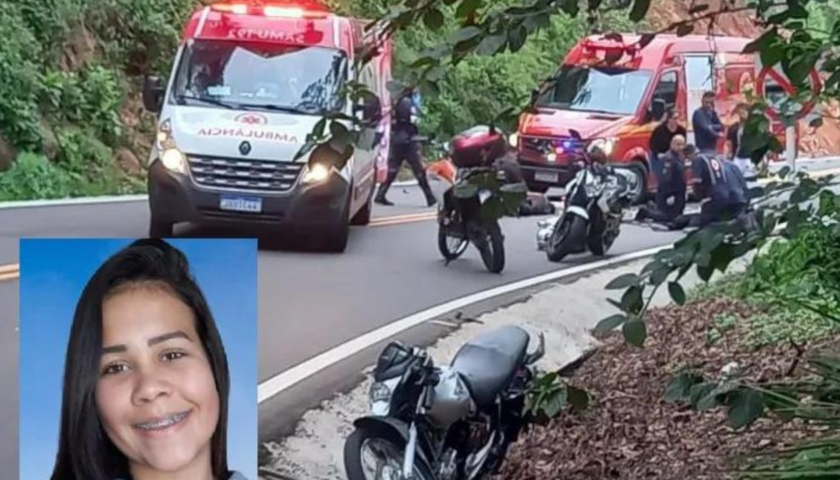 Uma jovem de 21 anos, identificada como Bruna da Silva Santana, morreu em acidente de trânsito ocorrido no final da tarde deste domingo (15) na BR-470, na descida da Serra das Antas, entre Veranópolis e Bento Gonçalves. Bruna estava na garupa de uma motocicleta que colidiu com um Chevrolet Spin. O motociclista, também de 21 anos, está internado em estado grave no Hospital Tacchini. Os ocupantes do carro saíram ilesos.