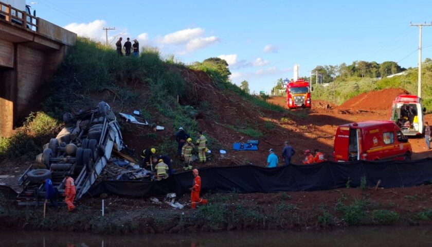 Motorista fica ferido após cair com caminhão de ponte na BR-285, em Ijuí