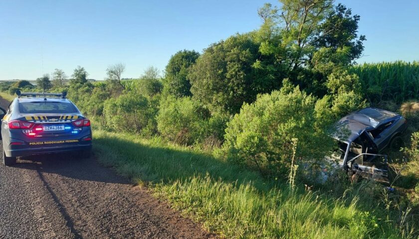 Na manhã desta segunda-feira (4), a Polícia Rodoviária Federal atendeu um acidente no km 493 da BR 287, em São Borja, envolvendo um automóvel, onde o motorista ficou gravemente ferido.