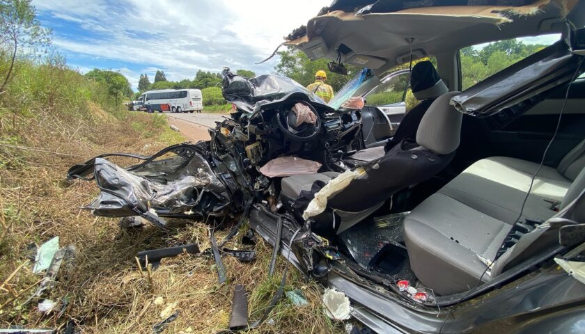 Na tarde desta quinta-feira (13), um grave acidente foi registrado na ERS-153, envolvendo um Toyota Corolla grafite e um ônibus. A condutora do carro, que seguia no sentido Ernestina/ Passo Fundo, teria invadido a preferencial, resultando na colisão.