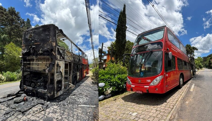 Um ônibus de turismo pegou fogo na manhã deste sábado (28) na Estrada do Caracol, em Canela, na Serra do RS. Todos os 40 passageiros foram retirados em segurança e não ficaram feridos, segundo o Corpo de Bombeiros. As chamas foram extintas.
