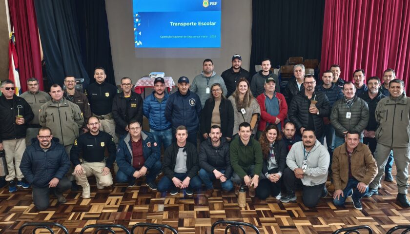 Na manhã desta quarta-feira (06), a Polícia Rodoviária Federal promoveu, em Santiago, uma ação educativa voltada a motoristas de transporte escolar da rede pública e privada. O objetivo foi conscientizar sobre a importância da segurança e esclarecer dúvidas sobre a legislação específica do setor.