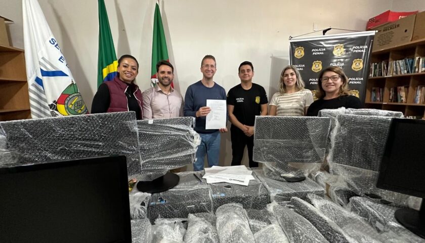Na ocasião, foram entregues sete equipamentos aos diretores do presídio, Cledir Pires e Carlos Brandli, e ao Delegado Penitenciário Regional Thiago Nothen, que atuarão na implementação de um projeto inovador. O objetivo é garantir aos apenados o acesso ao ensino superior na modalidade EAD, em parceria com a universidade local, promovendo dignidade, educação e ressocialização por meio da tecnologia.