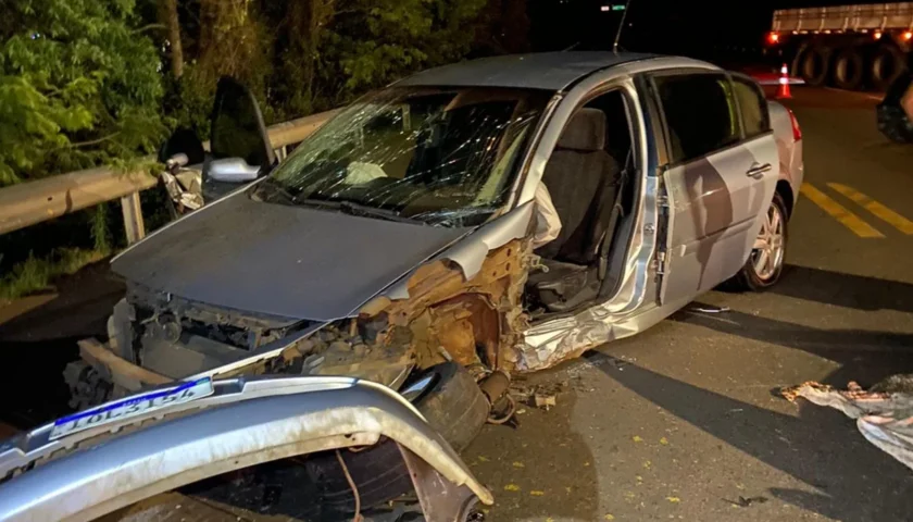 Conforme o Corpo de Bombeiros, o choque entre os veículos ocorreu próximo do trevo de acesso a um posto de combustíveis. A equipe precisou serrar a porta de um dos automóveis para fazer o resgate das vítimas.