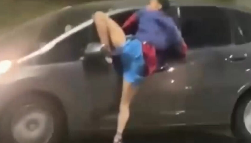 Vídeo mostra indivíduo preso em janela de carro após suposta tentativa de roubo