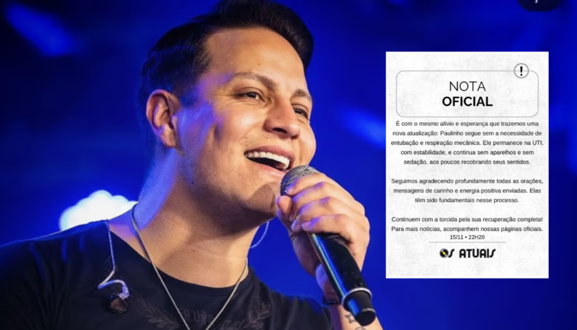 “É com o mesmo alívio e esperança que trazemos uma nova atualização: Paulinho segue sem a necessidade de entubação e respiração mecânica. Ele permanece na UTI, com estabilidade, e continua sem aparelhos e sem sedação, aos poucos recobrando seus sentidos. Seguimos agradecendo profundamente todas as orações, mensagens de carinho e energia positiva enviadas. Elas têm sido fundamentais nesse processo. Continuem com a torcida pela sua recuperação completa! Para mais notícias, acompanhem nossas páginas oficiais.”